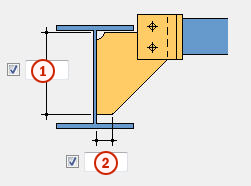 默认值 主零件翼缘边缘与最接近的节点板角部之间的间隙。 自动默认值可更改此选项。 |