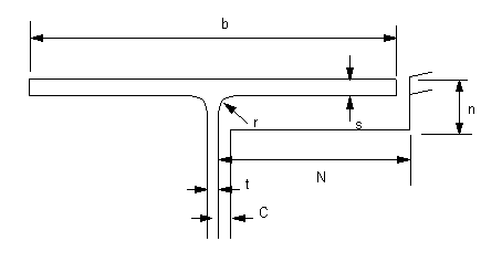 C = t/2 + 2mm,舍入到最接近的毫米数 N = ((b-t)/2) + 10mm,向上舍入到最接近的 2 mm n = (s+r),向上舍入到最接近的 2 mm |