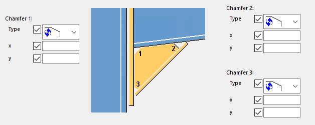 选择折角类型并定义尺寸。 此折角仅可用于焊接板腋。 |