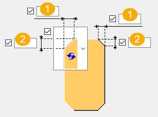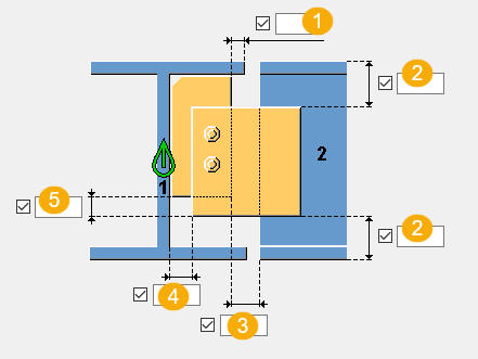 除非您在 1 和 2 字段中输入值,否则将使用默认值对翼缘创建切割。 |