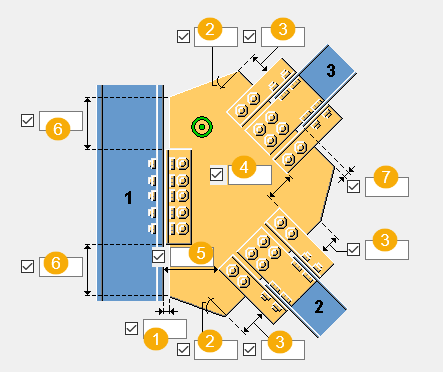 螺栓间距。 请使用空格分隔螺栓间距值。为螺栓间的每个间距输入一个值。例如,如果有 3 个螺栓,则输入 2 个值。 |