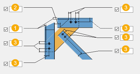 选中的复选框定义螺栓构件中使用的组件对象(螺栓、垫片和螺母)。