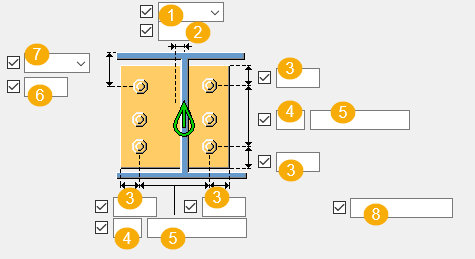 使用参数选项卡可以控制腹板加劲的底板 (1016) 中使用的组件。