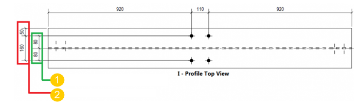 在本示例中,孔尺寸从翼缘的中间而不是“I”型截面的翼缘边缘进行设置。