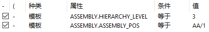 ASSEMBLY.HIERARCHY_LEVEL作为属性,选择相等,并将所需的构件层次定义为值。 -