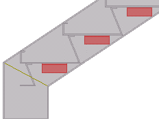 踏板顶面和底面具有 90 度弯曲的楼梯。 踏步用垂直和水平支架连接到纵梁。 踏步前边缘具有红色的前缘截面。 |