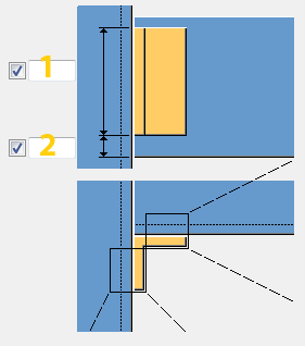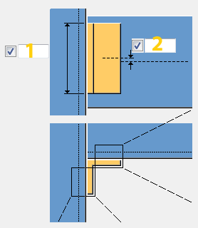 定义从纵梁边缘开始的垂直板的切割尺寸。 当底部平台类型设置为开槽时,您可以定义该尺寸。 |