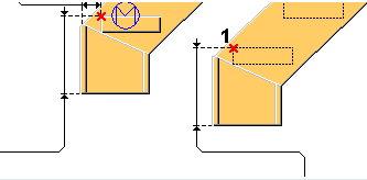 定义上支撑零件和纵梁切割之间的水平间隙。 将顶部平台类型设置为开槽时,您可以定义该尺寸。 |