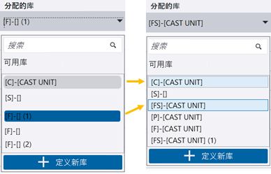 由于新的颜色,现在可以更轻松地在 分配的库 对话框的 检查分类 列中选择新库。当您将鼠标悬停在某个库上时,该库会显示为浅蓝色;当您选择一个库时,该库会显示为浅蓝色,并带有深蓝色边框。以前,所选库的深蓝色背景使文本难以阅读。