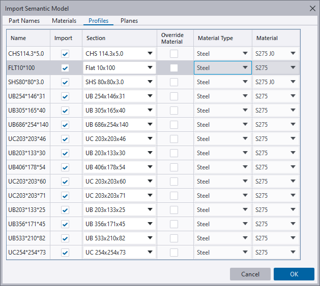 构件类别、截面尺寸、材料等级的转换会自动完成。可以过滤零件名称类别,以确保仅输入在结构上重要的模型零件。截面转换基于区域设置和几何横截面。所有这些都有助于快速、准确地进行传输,而无需映射文件或人工干预。