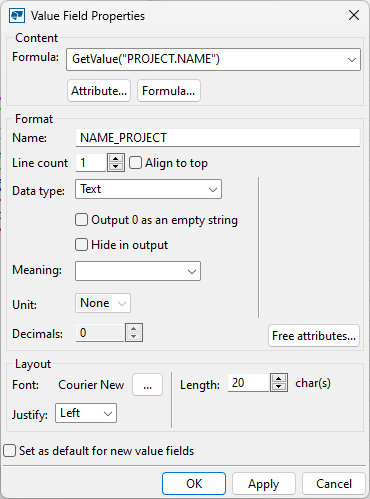 我们在页眉中添加了一些数值域和属性:PROJECT.NUMBER、PROJECT.NAME、PAGE 和 DATE。