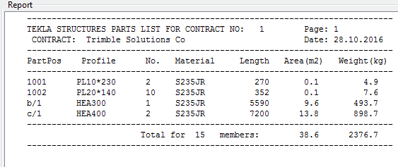 零件清单报告的示例: