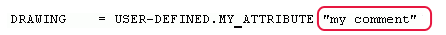开始之前,请将用户定义的属性添加到 objects.inp 文件中。例如,您可以将名为 MY_ATTRIBUTE 的属性添加到用户定义的图纸属性中。