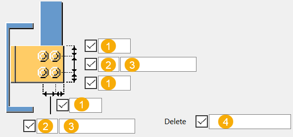 定义从螺栓组中删除哪些螺栓。 输入要删除的螺栓的螺栓编号,用空格分隔各个编号。螺栓编号从左到右、从上到下排列。 |