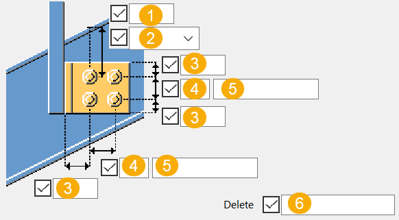 螺栓间距。 请使用空格分隔螺栓间距值。为螺栓间的每个间距输入一个值。例如,如果有 3 个螺栓,则输入 2 个值。 |