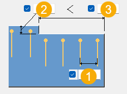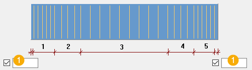 销子之间的销子间距值。当边缘长度介于定义值之间(图像中的 2 和 3 )时,此值用于创建空间。否则,将使用为 区域 定义的 箍筋间距值来创建空间。 |