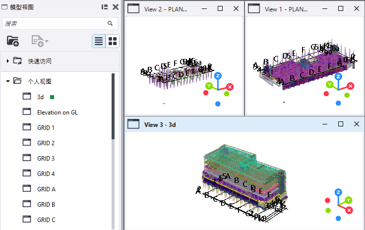 模型视图和图纸会自动自行调整大小和位置以适应屏幕,避免彼此重叠或与任何打开的侧窗体窗口重叠。动态调整确保当您拉伸某个视图时,其他视图会自动调整大小和进行自适应调整,即使整个 Tekla Structures 窗口被调整大小也是如此。