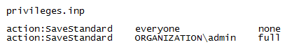 在 privileges.inp 文件中使用 SaveStandard 操作,以控制用户保存标准文件的权限。