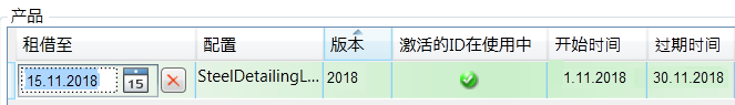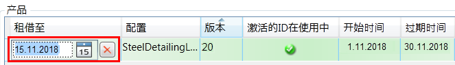产品区域显示有关许可证的信息,并可以设置许可证借用的到期日期: