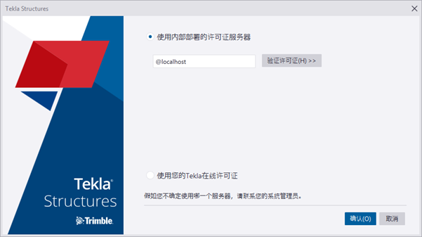 如果您之前在公司网络中使用过本地许可证服务器,则必须在 Tekla Structures 中更改许可证服务器地址才能使用 Tekla Subscription Tool。