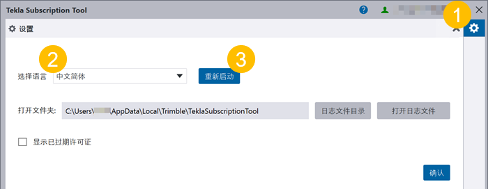 Tekla Subscription Tool 将重新启动,用户界面将以所选语言显示。