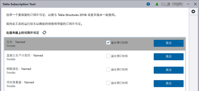 保留订阅许可证 Tekla Subscription Tool